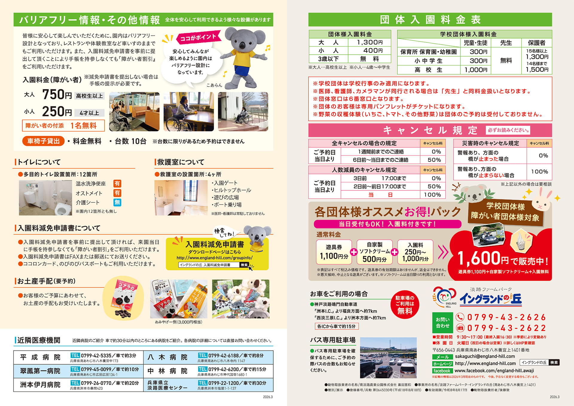 - ※団体料金は15名様以上から適用となります。団体の人数は4歳から人数にカウントされます。