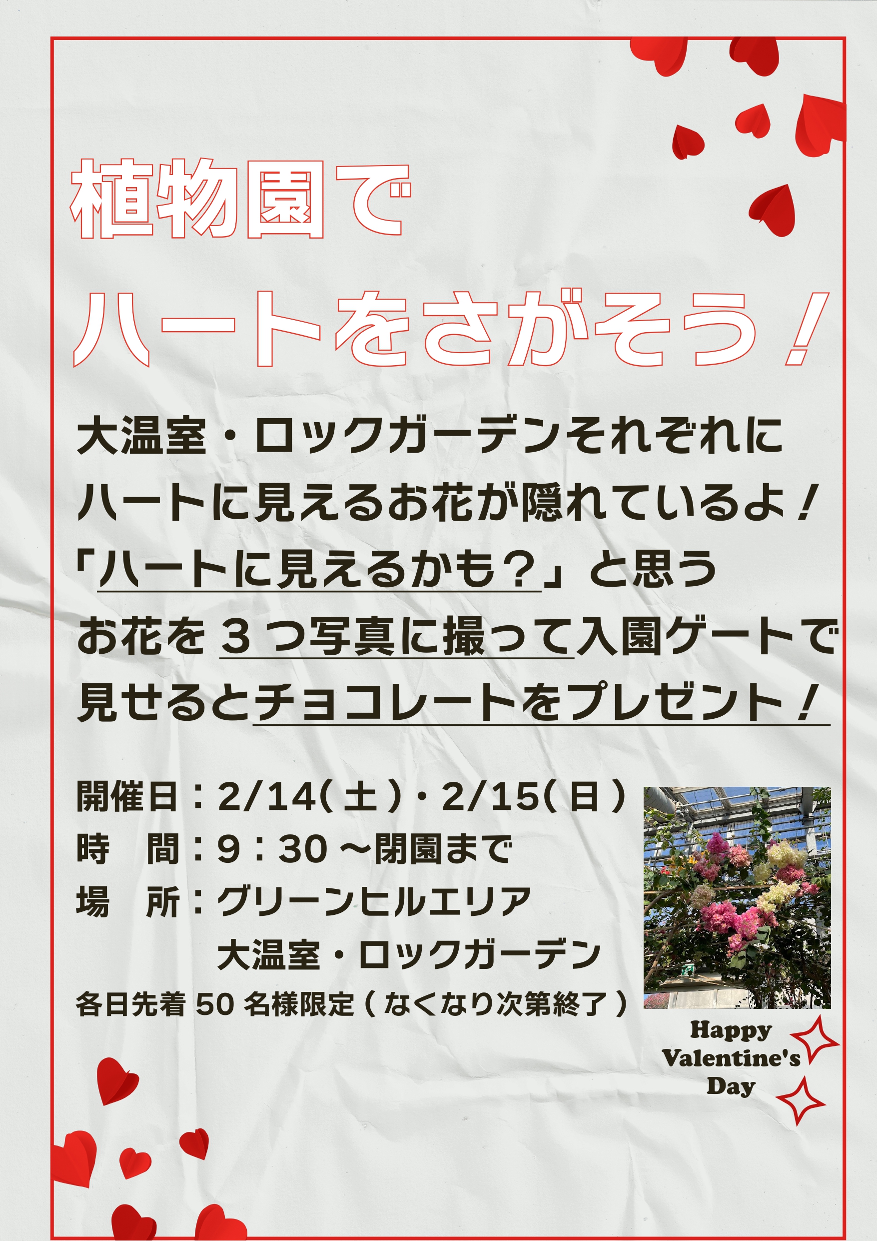 バレンタインは、植物園でちょっと特別なハート探しをしてみませんか?