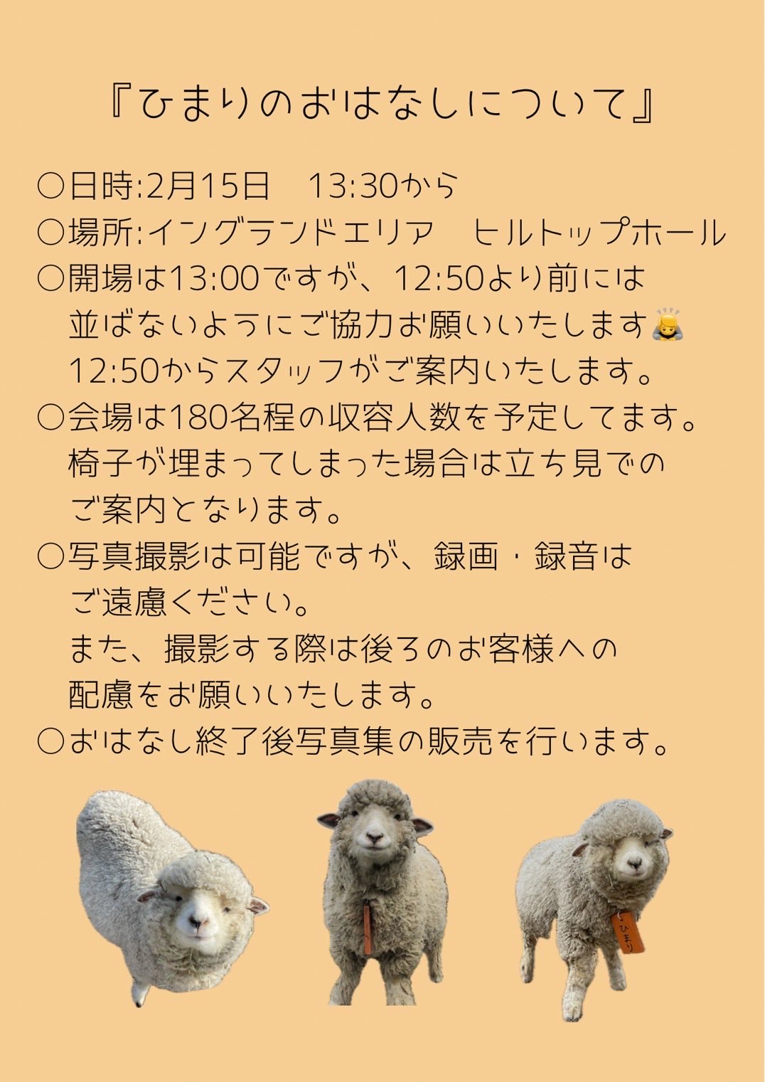 ひまり、ひなたやひつじのくにで暮らすひつじ達のお話を飼育員が行います。