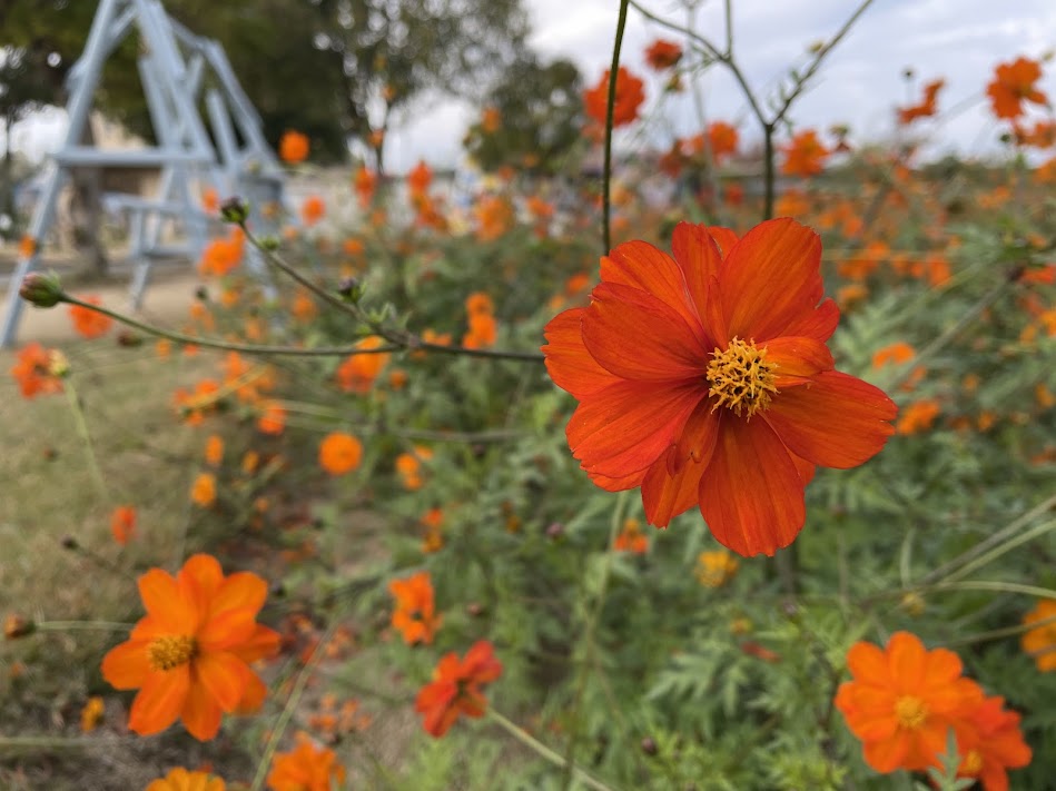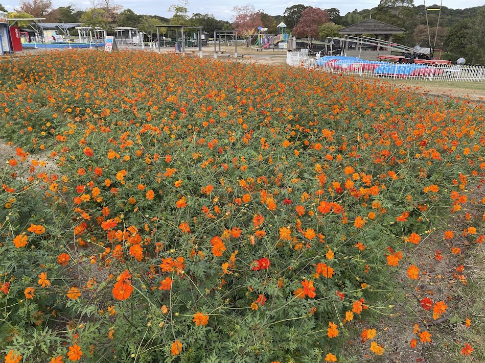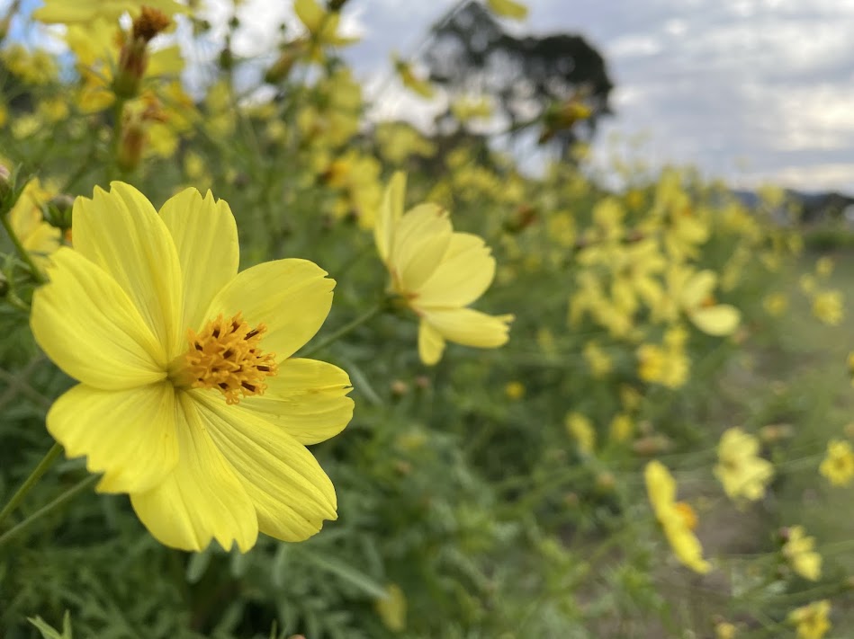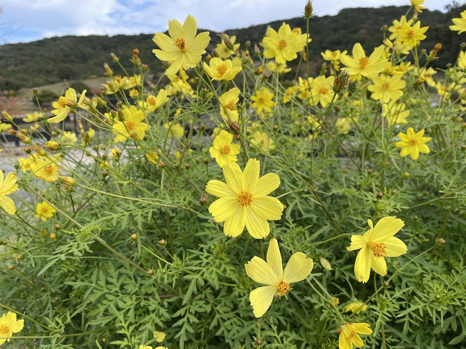 遊びの広場 おっとっと前では、小規模ですがキバナコスモスが見頃を迎えています。