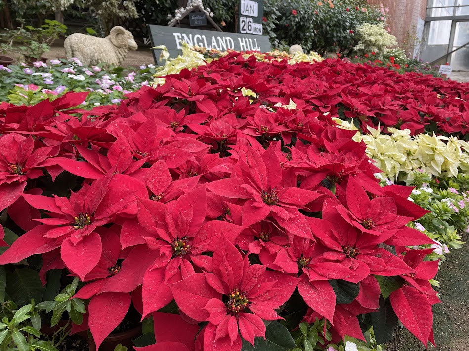 グリーンヒルエリア大温室内のコンサバトリーではポインセチアが見頃です🌺
