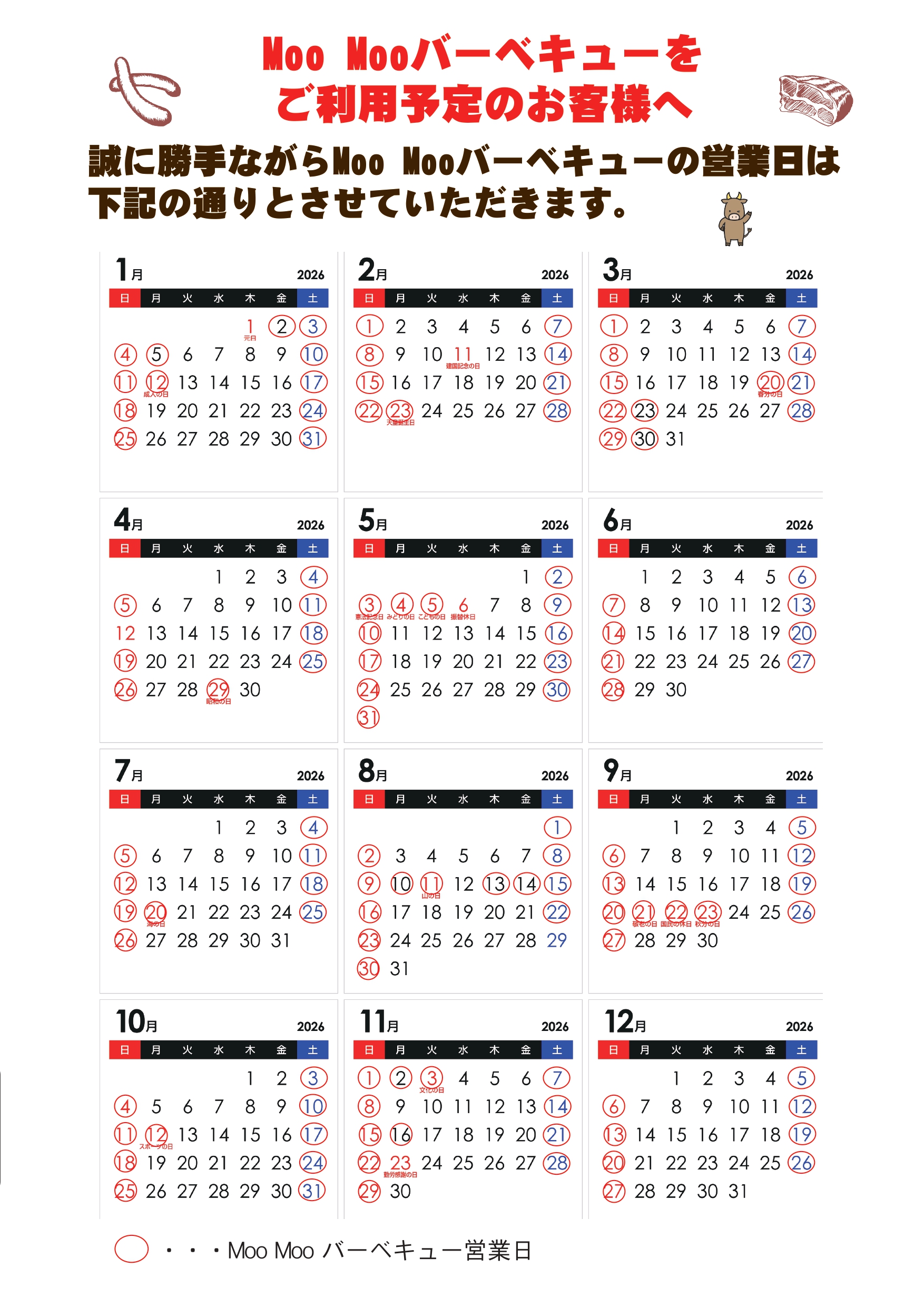 Moo Moo バーベキューをご利用の際は営業日をご確認ください。