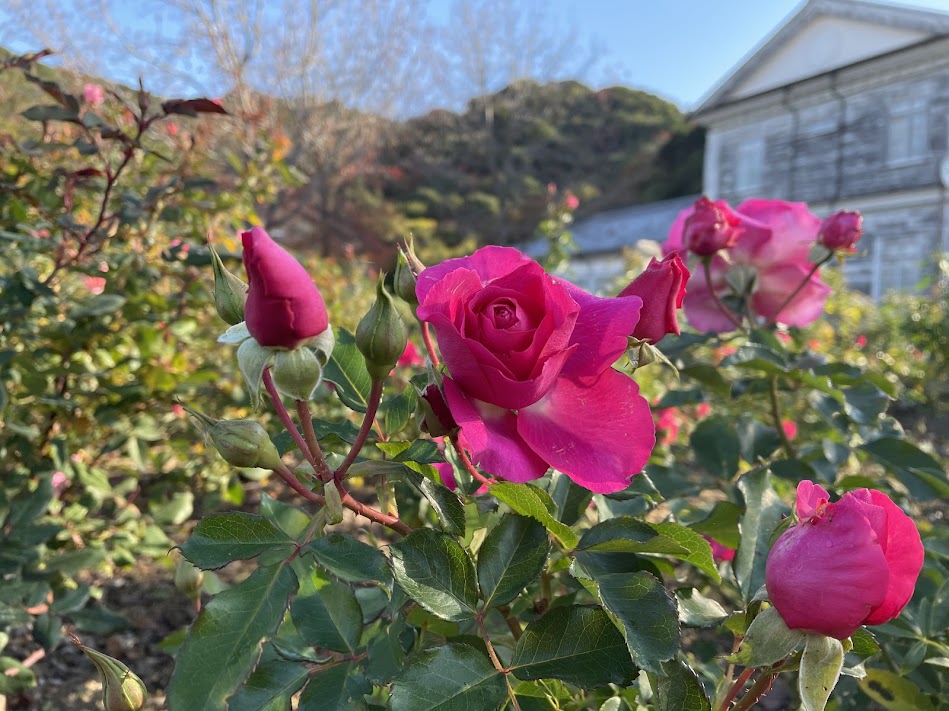 ファーマーズキッチン前のバラ園では少しですがバラが咲いています🌹