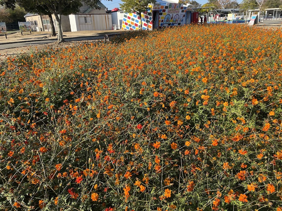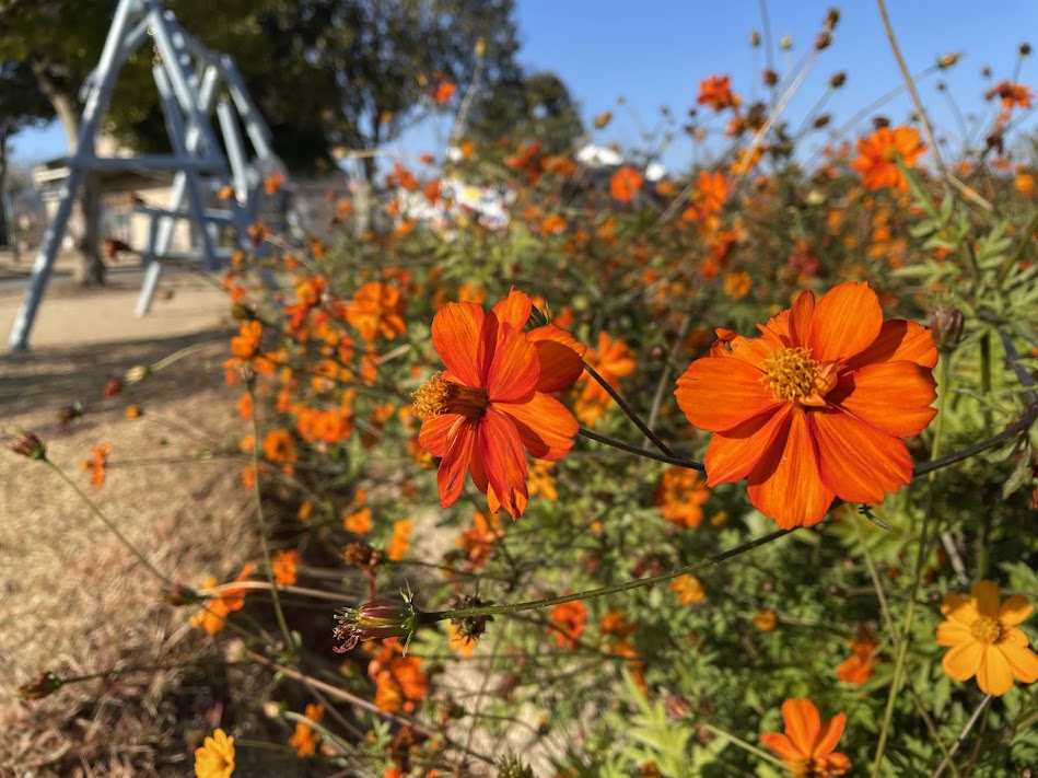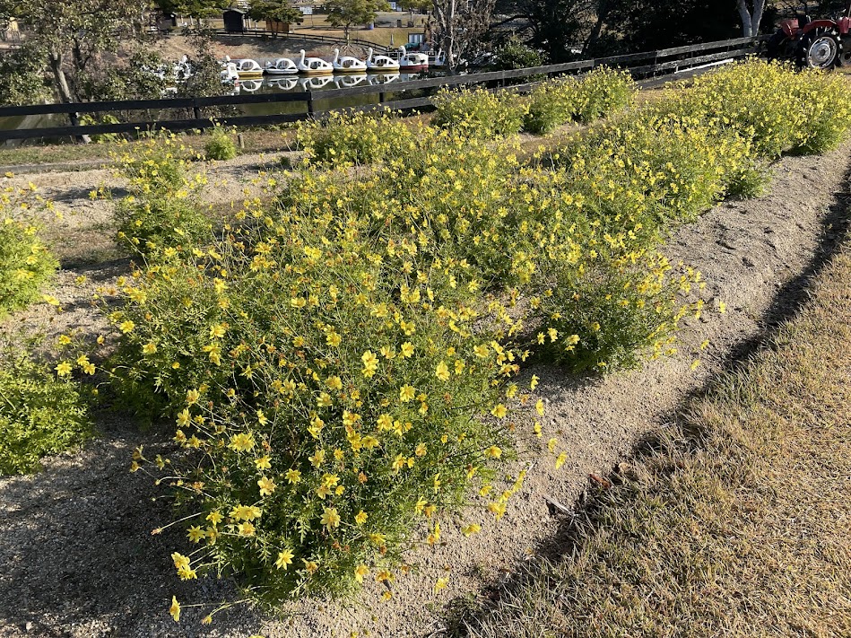 遊びの広場 おっとっと前 小規模ですがキバナコスモスが見頃です。