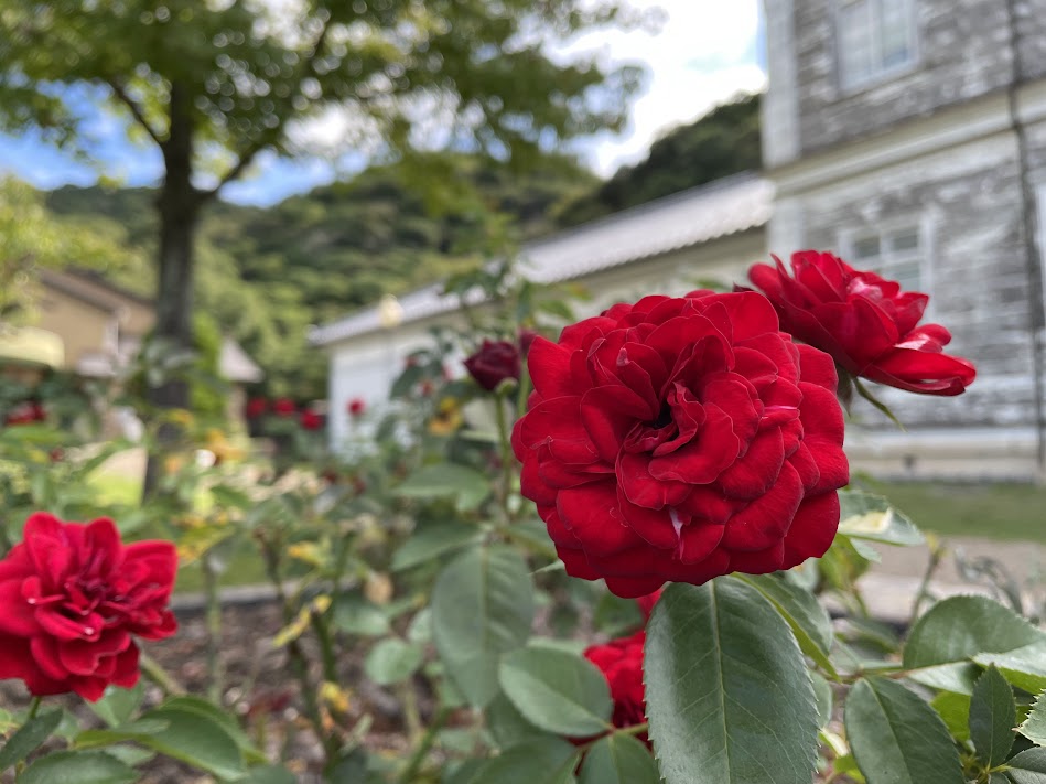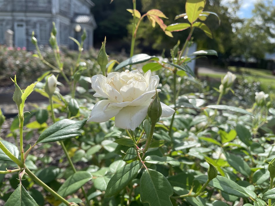 ファーマーズキッチン前 バラ園では少しずつバラも咲いてきています🌹