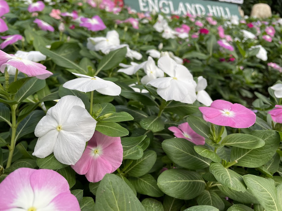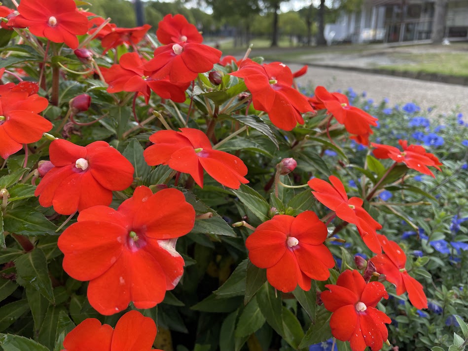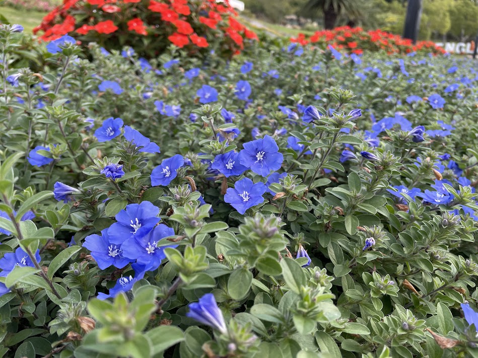 中央花壇はサンパチェンスやアメリカンブルーなどがご覧いただけます。
