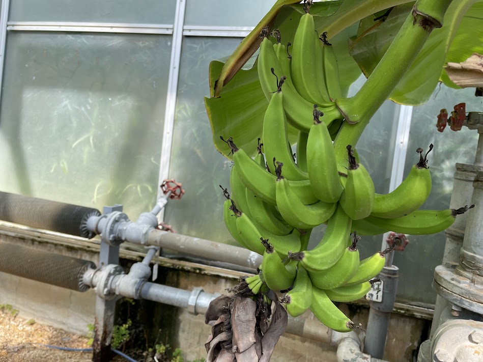 こちらは実が成っています。スタッフによると「甘くておいしいよ」とのことです🍌