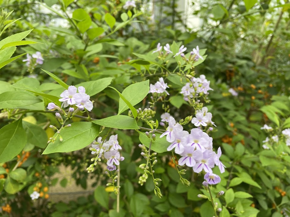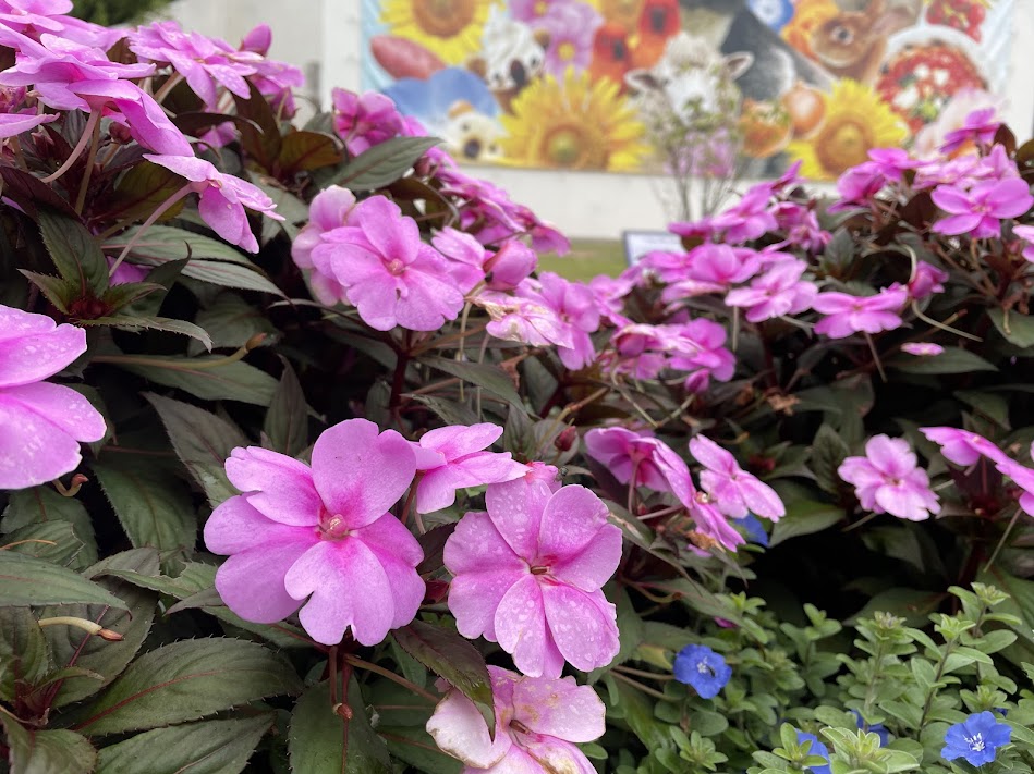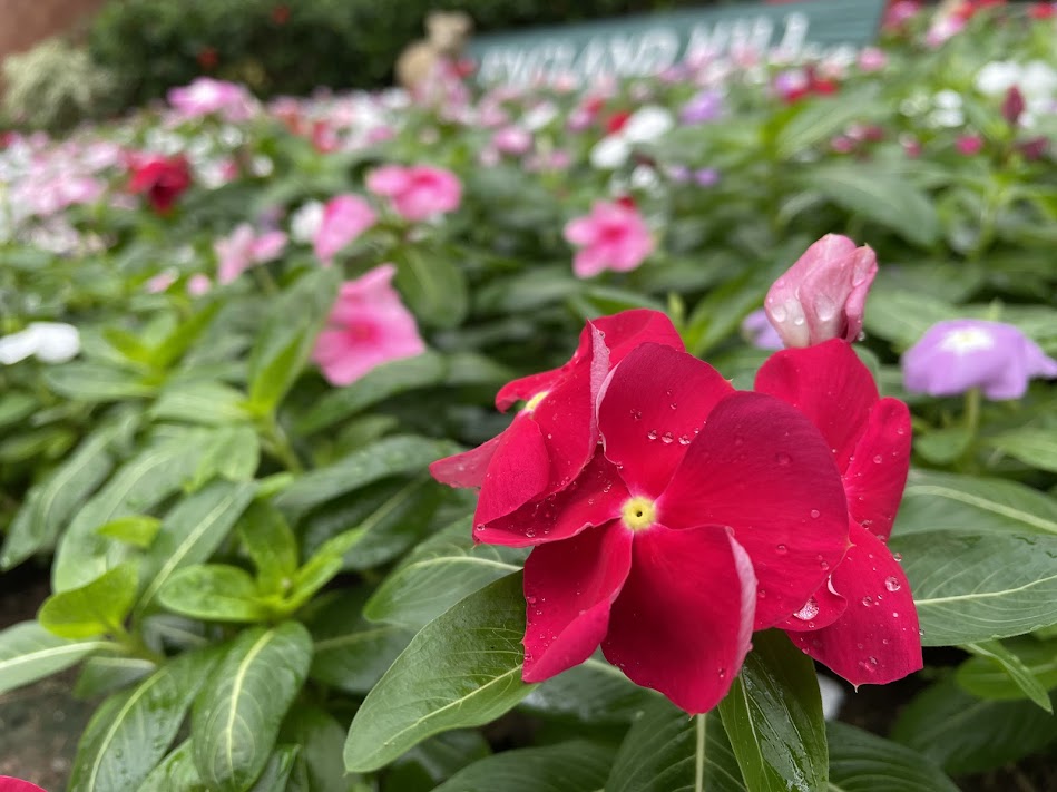 中央花壇はサンパチェンスやアメリカンブルーなどがご覧いただけます。