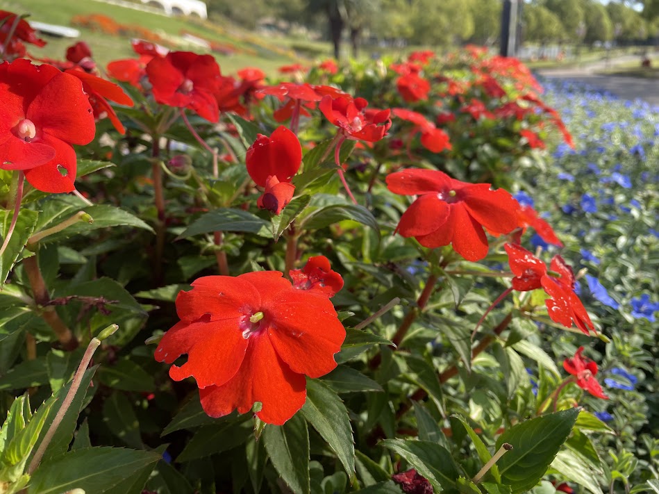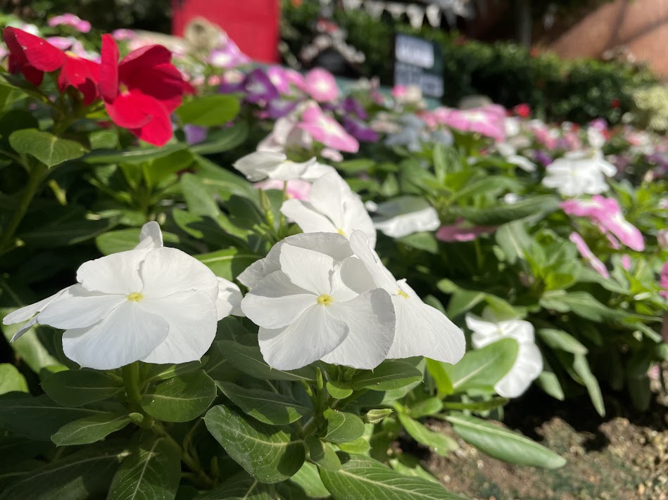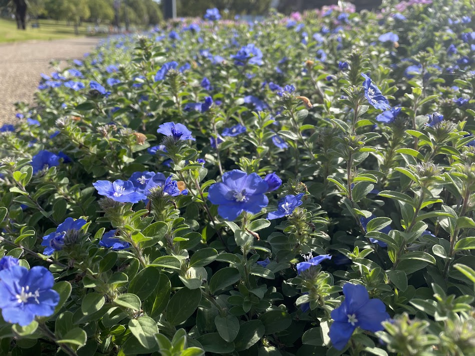 中央花壇はサンパチェンスやアメリカンブルーなどがご覧いただけます。