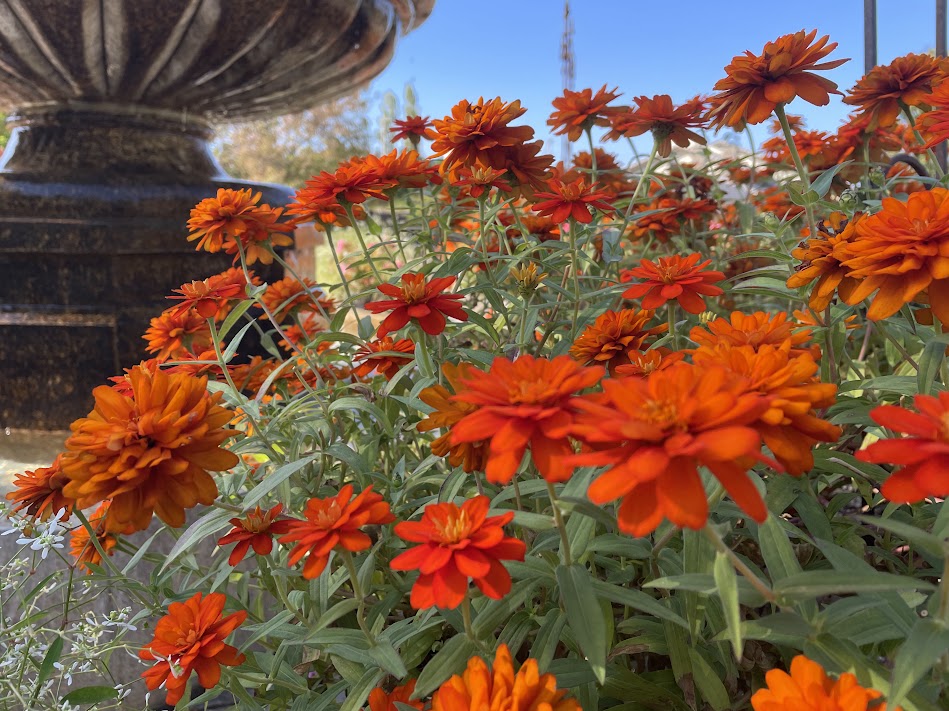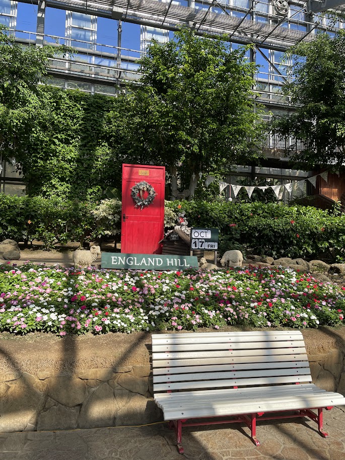 イングランドエリア入口では、ジニアが見頃を迎えております。