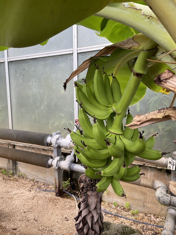 こちらは実が成っています。スタッフによると「甘くておいしいよ」とのことです🍌