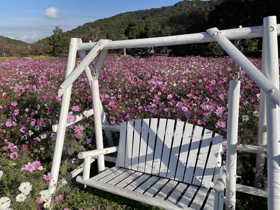 花畑の中にはブランコベンチやハートのオブジェなどのフォトスポットも設けています📷✨