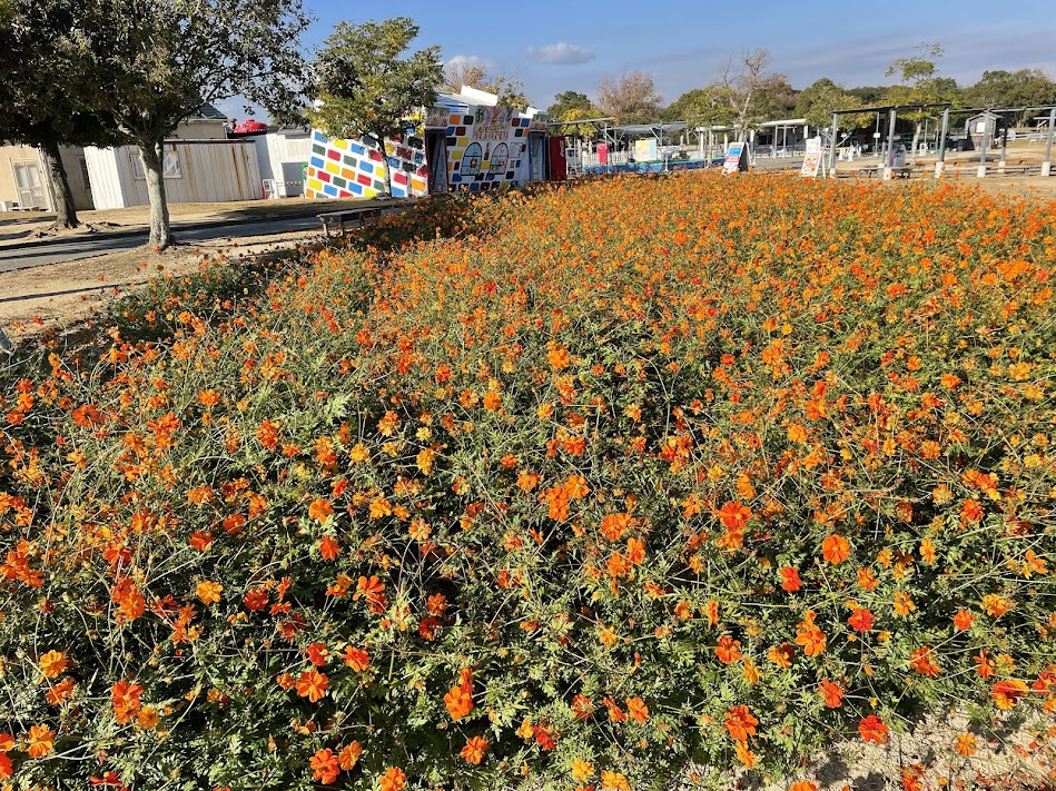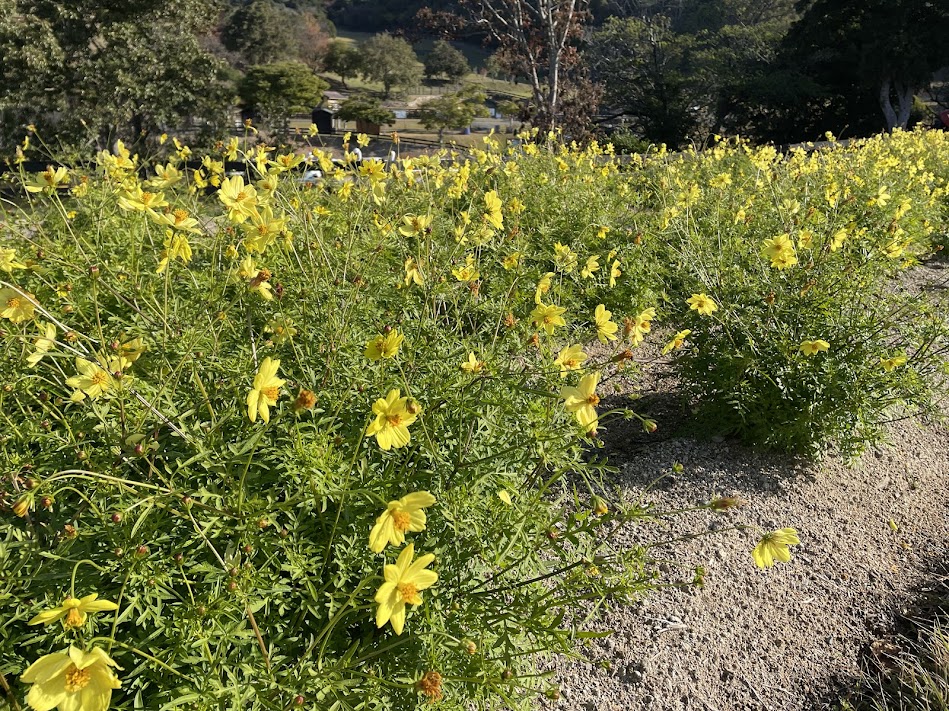 遊びの広場 おっとっと前では、小規模ですがキバナコスモスが咲いています。