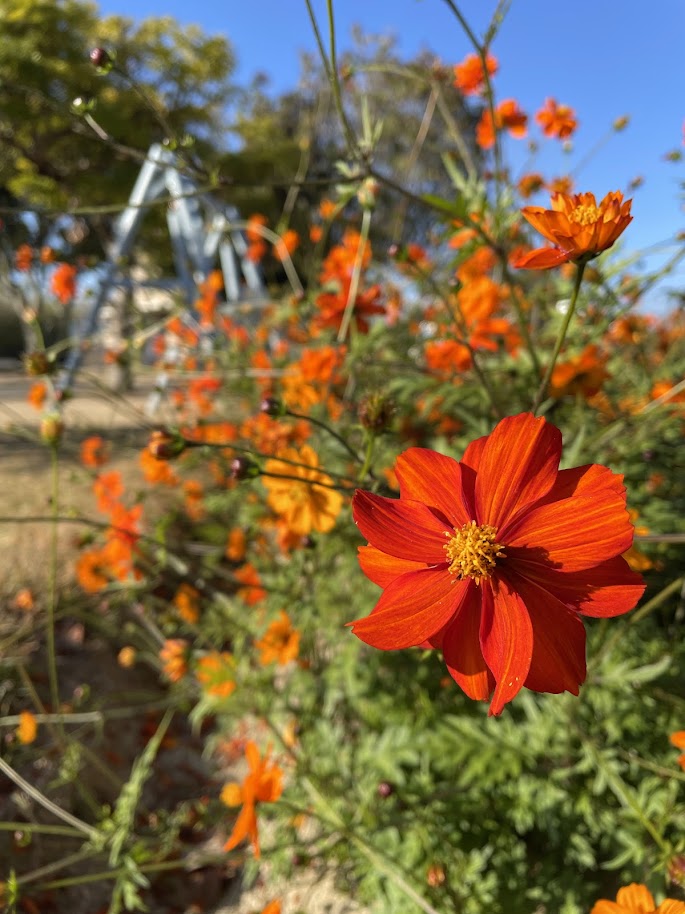 晴れた日は、青空にコスモスが映えてとても綺麗に見えます。