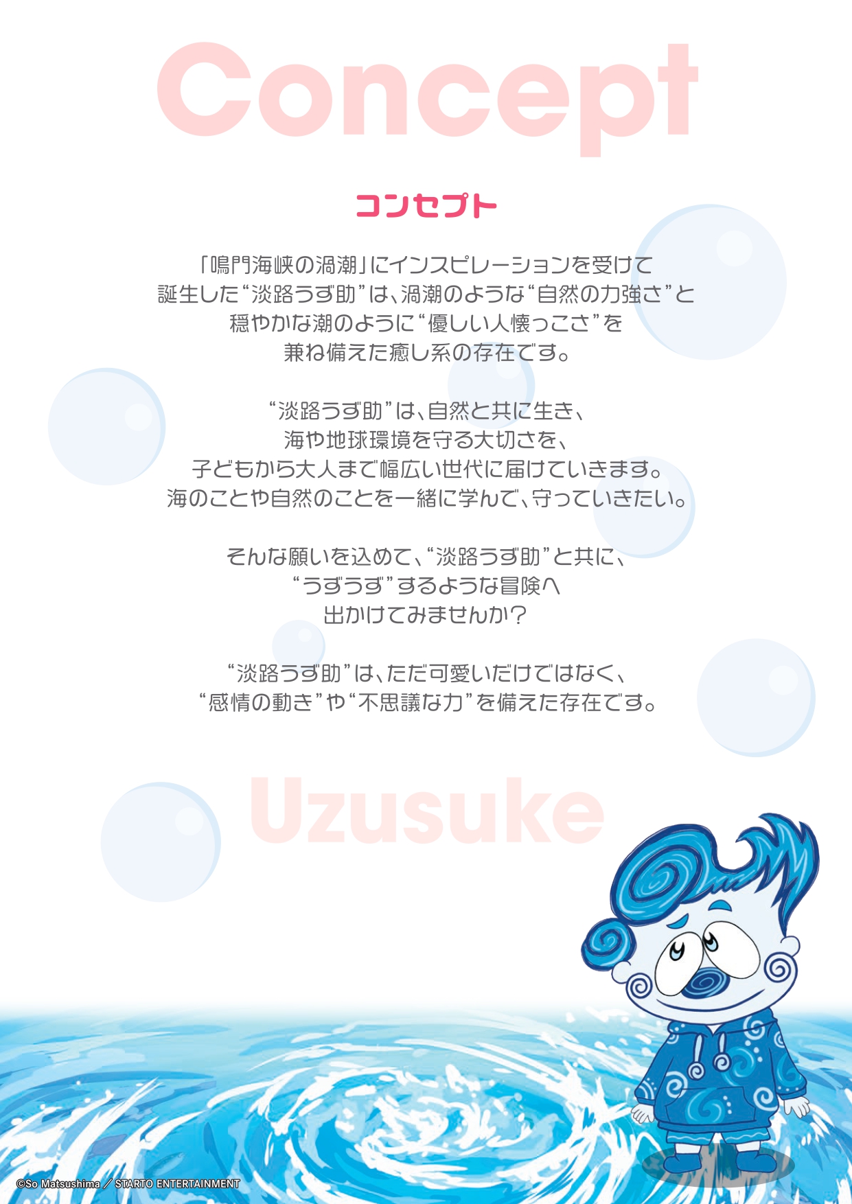 施設の入口付近に設置された大型のデジタルサイネージ「うずしおビジョン」から飛び出したキャラクター、「淡路うず助」。現在道の駅うずしおでは南あわじ市の四季折々の魅力をとらえた映像と共に、「淡路うず助」のショートアニメーションが上映されています。