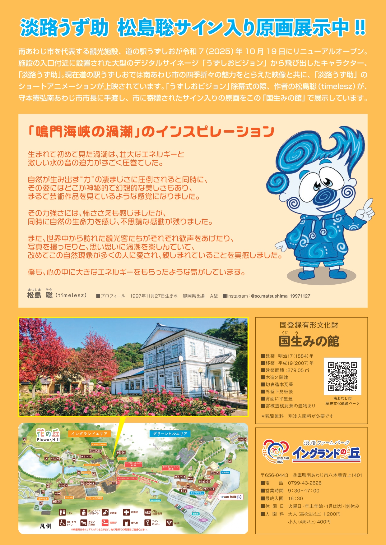 「うずしおビジョン」除幕式の際、作者の松島聡(timelesz)が、守本憲弘南あわじ市市長に手渡し、市に寄贈されたサイン入りの原画をこの「国生みの館」で展示しています。