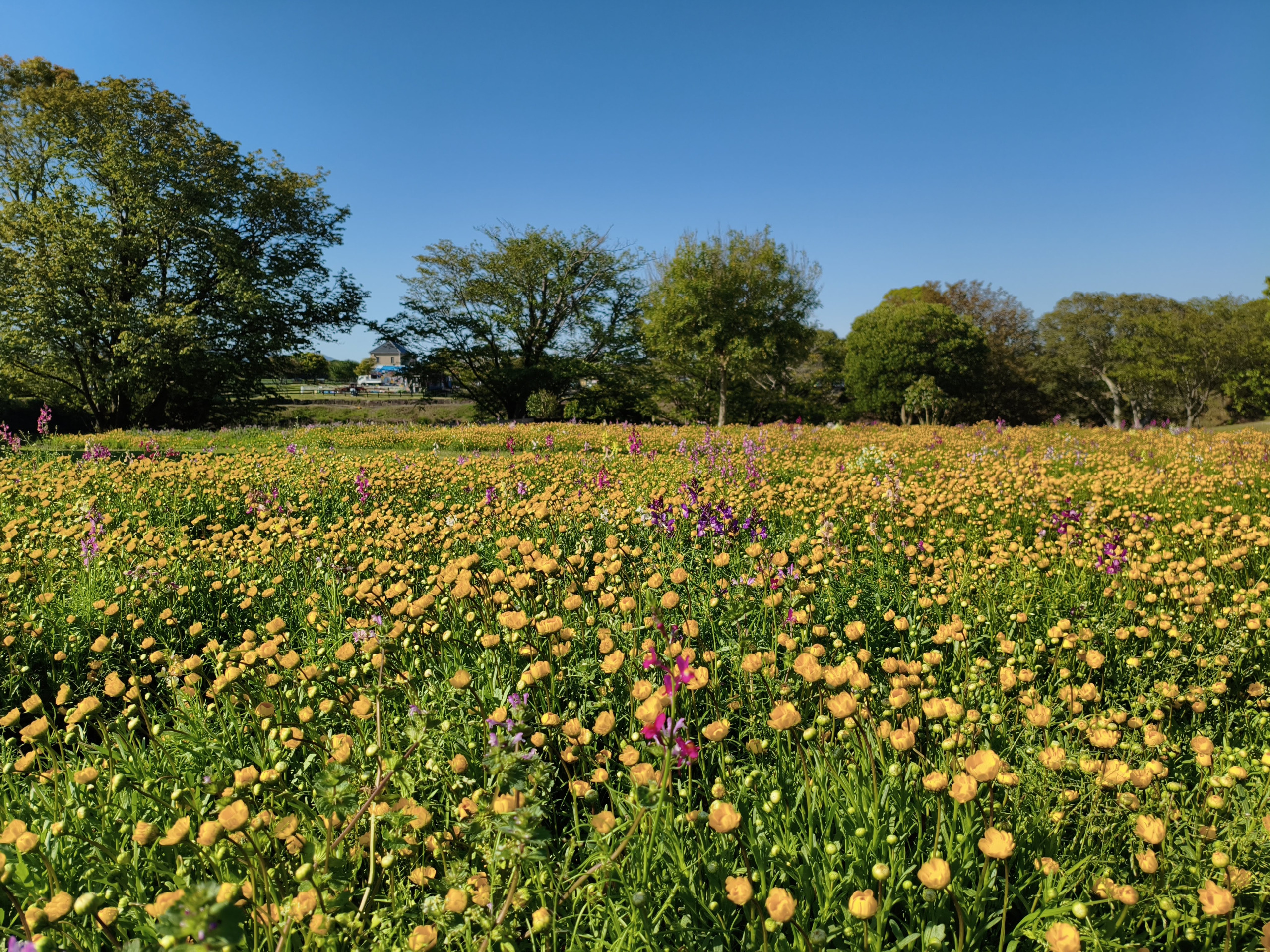 また、花の丘のふもとでは、ノースポール、ムルチコーレの花畑にて、