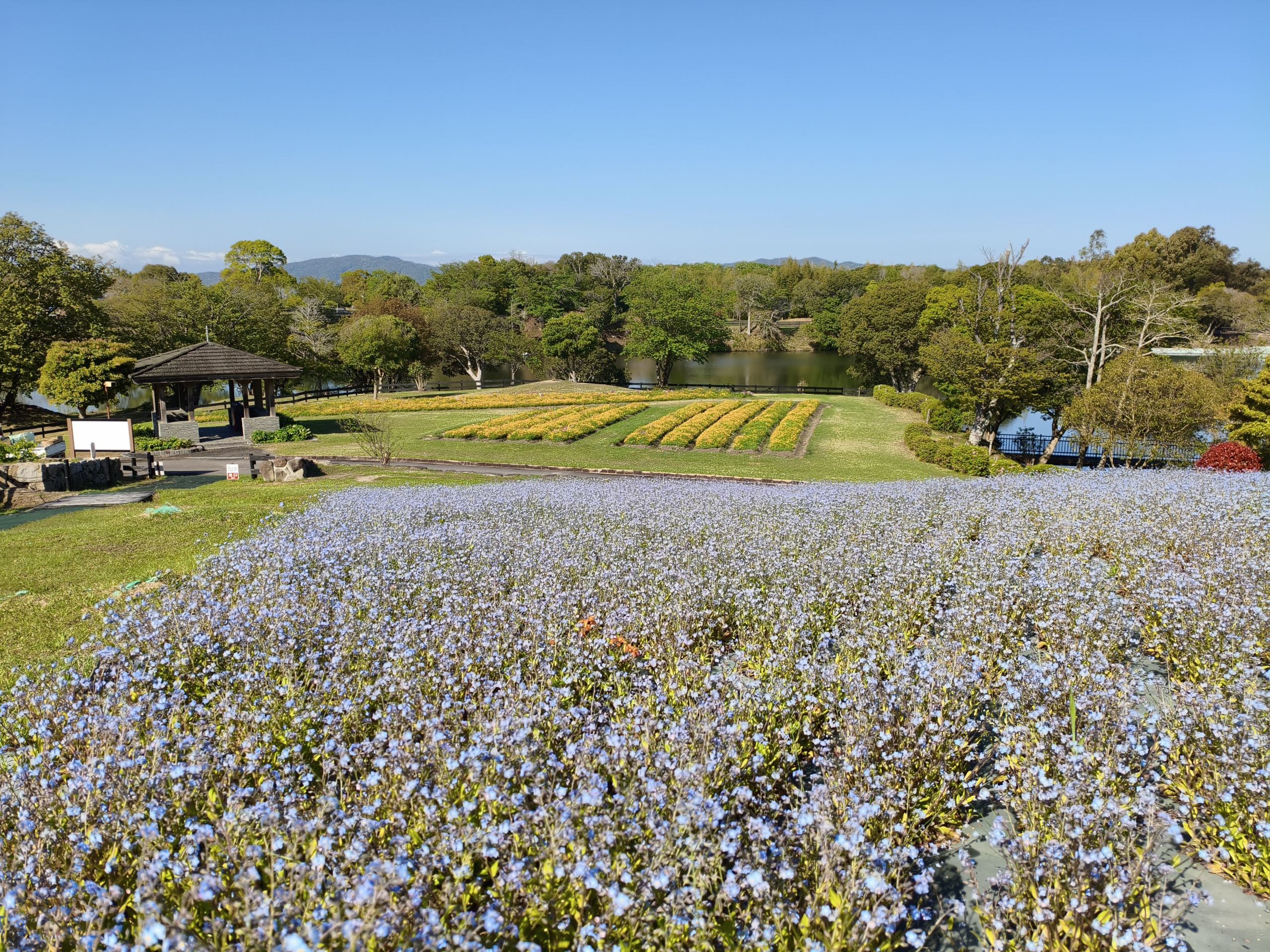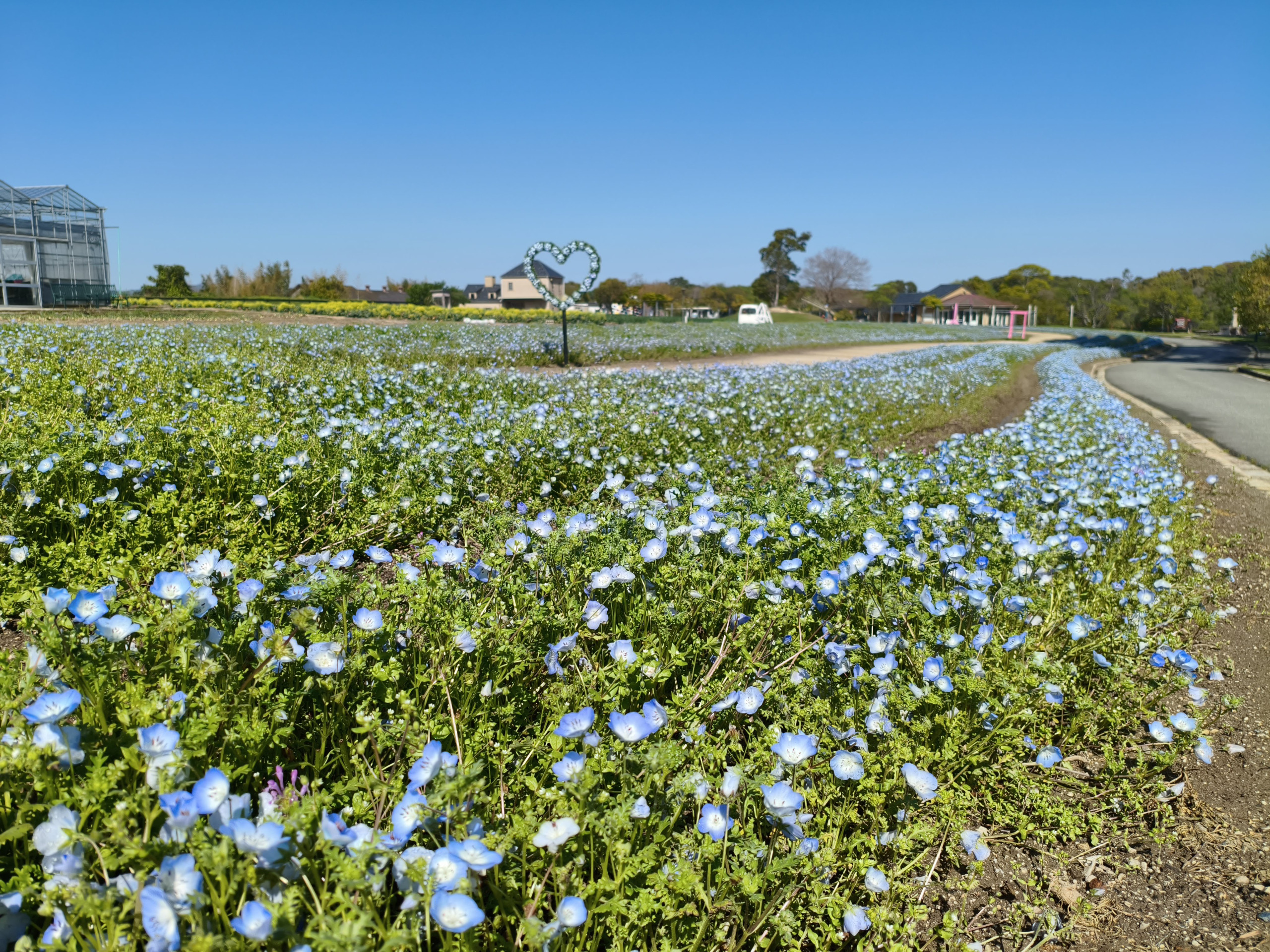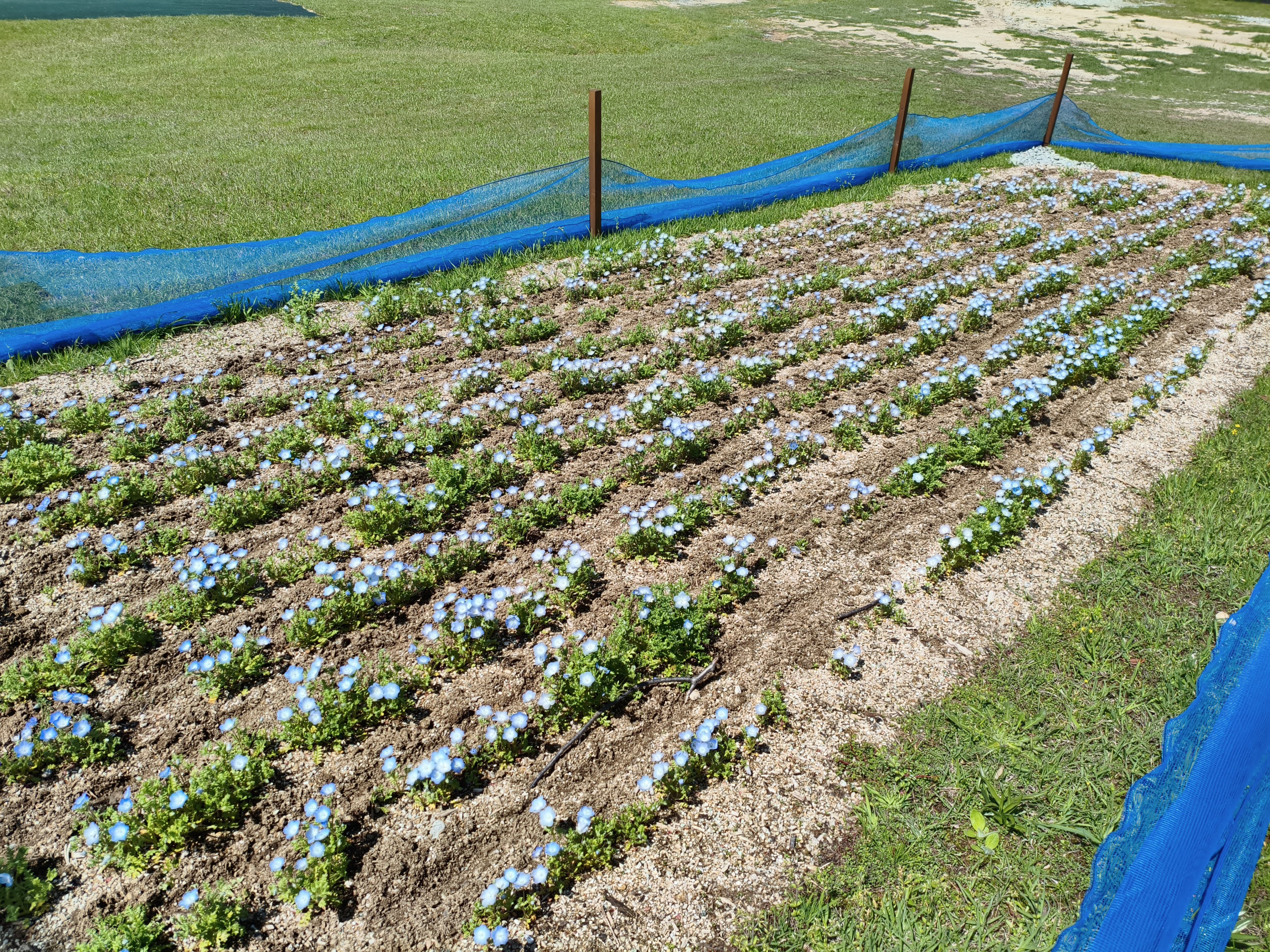 イングランドエリアのメイン、大花畑では、ネモフィラの開花が進んでいます。