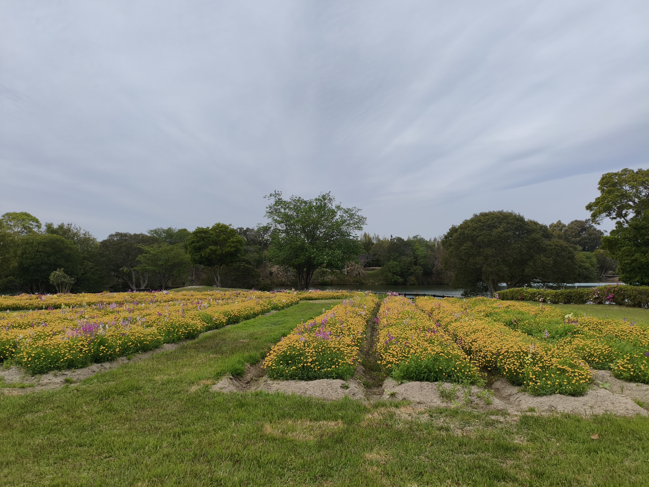また、花の丘のふもとでは、ノースポール、ムルチコーレの花畑にて、