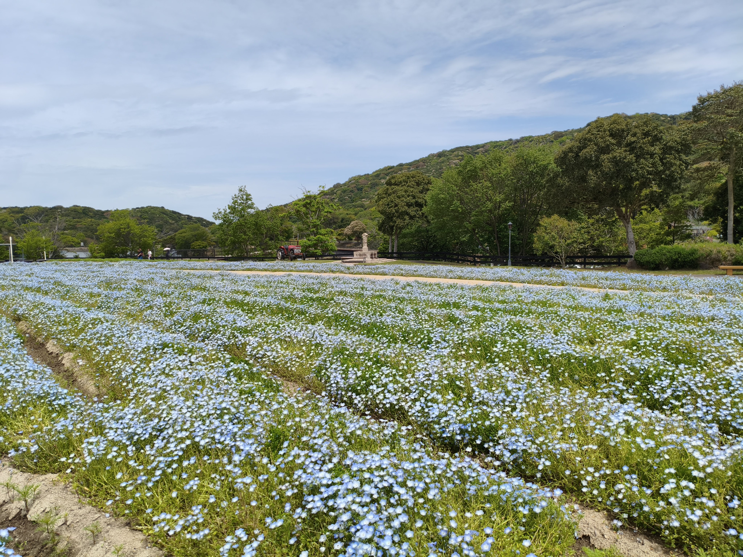 約10万本のネモフィラは、5月上旬ころまでが見頃となる予定です。