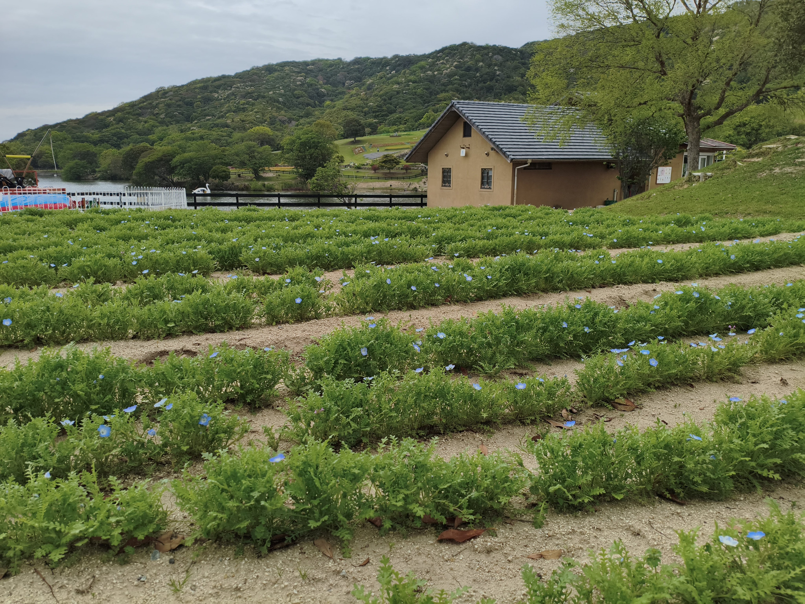また、イングランドエリア ミルクハウス横のネモフィラ畑も開花が始まっています!