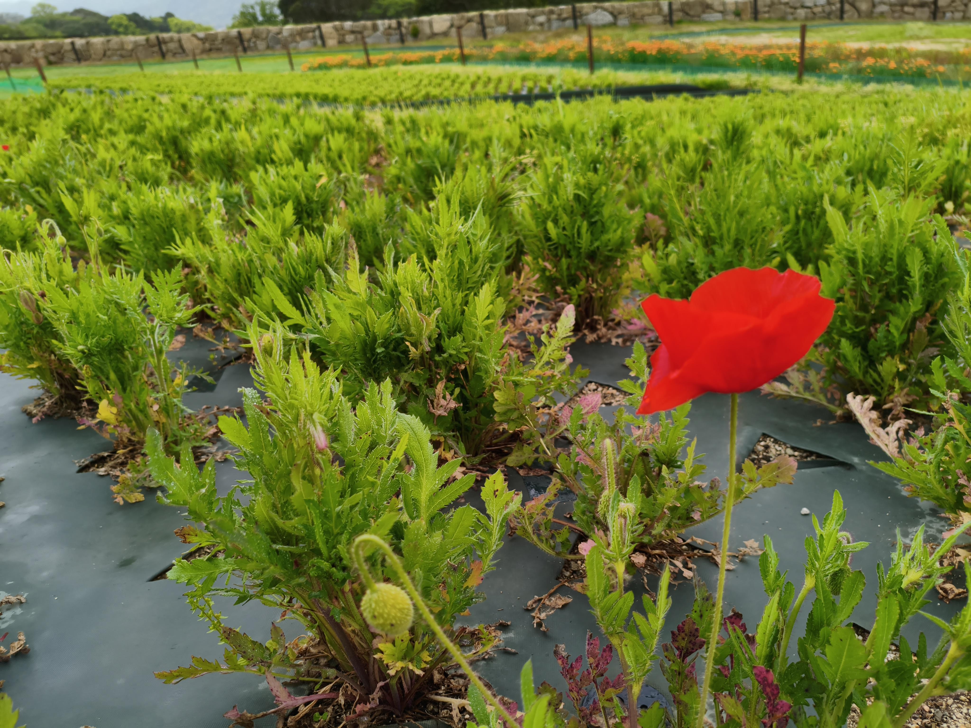 開花はまだ先ですがシャーレーポピーも順調に成長中です。