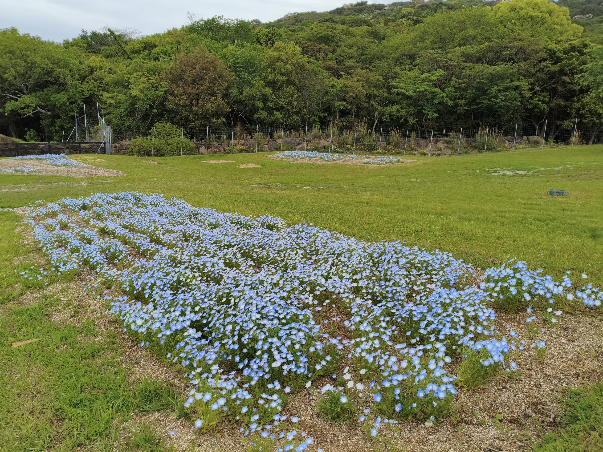 イングランドエリア 遊びの広場前のネモフィラ畑も開花が始まりました!